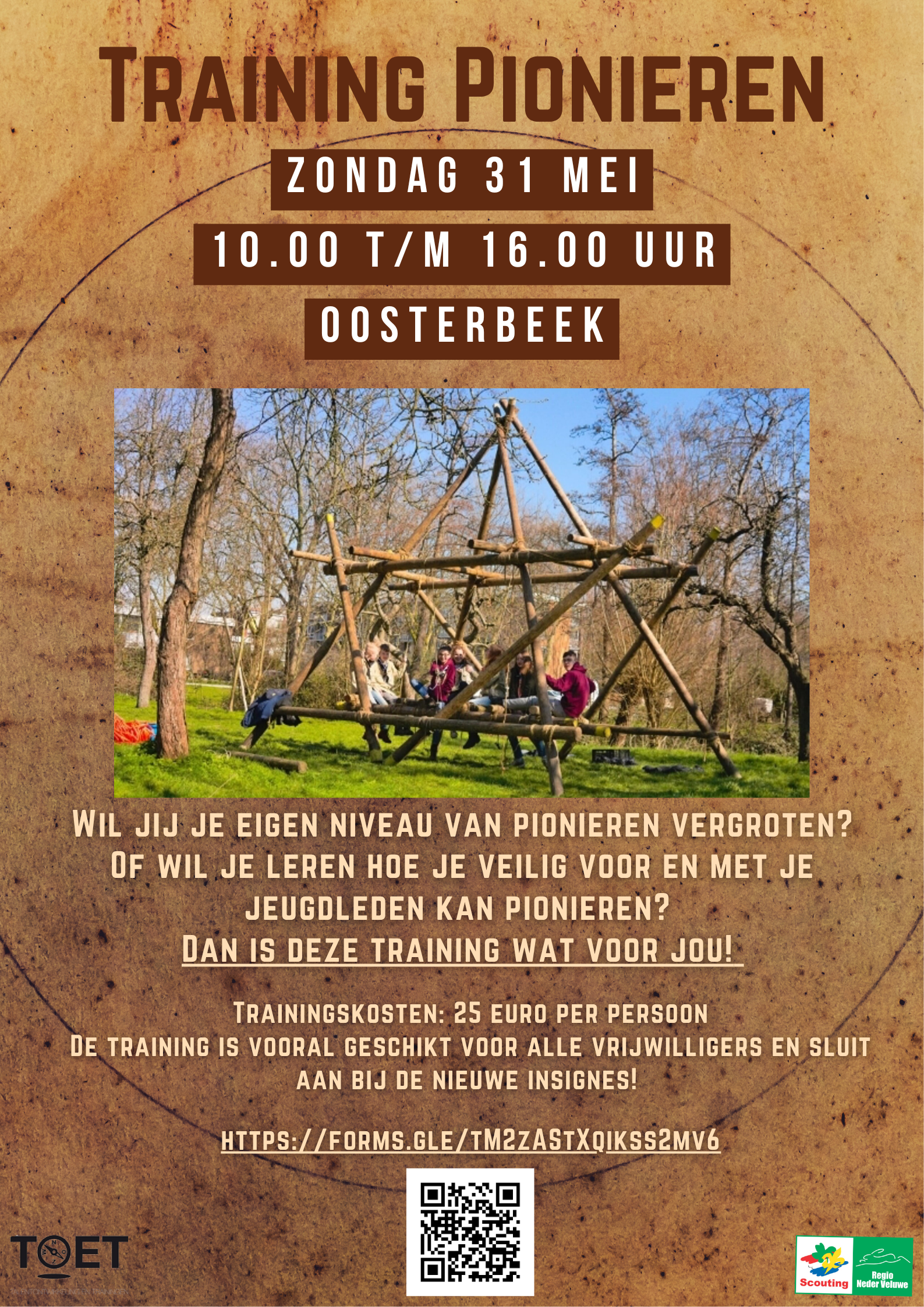 Op zondag 31 mei 2026 organiseert Team TOET, samen met de vakopleiders van Scouting Nederland, een training pionieren en knopen.
